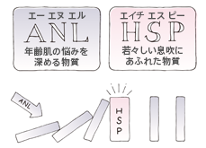 年齢肌ケアの要としてドモホルンリンクルがいち早く注目したのが、タンパク質です。肌悩みを加速させる「ANL」と、肌のすこやかさを保とうとする「HSP」の2つのバランスに注目して、負の連鎖を食い止めるケアを追究してきたのです。外的刺激の多い現代にあっても自らの力で負のドミノを止められる——そんな理想的な肌を目指して。
