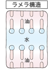 肌は「ラメラ構造」と呼ばれる、水と油がミルフィーユのように重なった層でできてバリアとなっています。それを壊して化粧品成分を浸透※8させるのではなく、その構造に限りなく近づけ、なじませて浸透※8させるのがドモホルンリンクルのこだわり。化学合成技術ではなく、コメや大豆など天然由来の成分で高密度カプセルを実現。負担をかけないように成分を届ける技術です。
