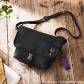 バックポケットやバックル仕様など、使い勝手のよい設計のメッセンジャーバッグ。