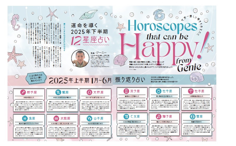 今号も当たると話題の占い師が集結! 2025年下半期のあなたの運勢を導きます。恋愛、仕事、人間関係、お金のこと、なんかうまくいかない……という人は必見。開運のヒント、運勢が好転するアドバイスが満載です。新たな時代「風の時代」の運勢の流れに上手に乗るコツや、未来予言なども掲載。幸運への道をわかりやすく解説します。