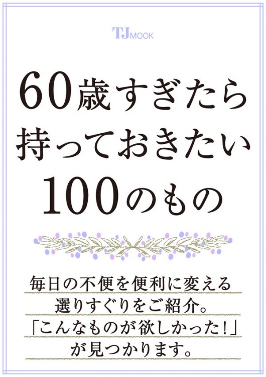 年齢を重ねたら手元に置いておきたいものを紹介した大人気アイテム本の最新版が登場! 毎日をラクにする便利グッズはもちろん、将来に備えるアイテムなど、実際に使っている人の声や専門家の解説とともに紹介します。