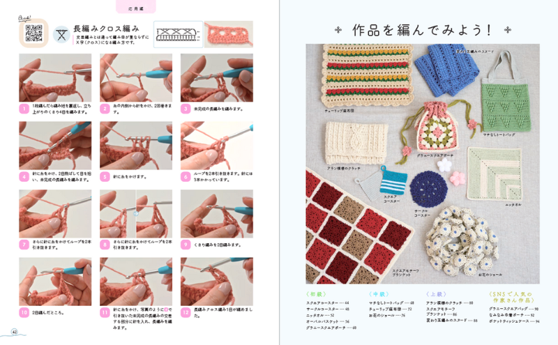 作品のレシピは初級編、中級編、上級編に分けられており、上級編まで編めるようになったら、好きな作品をどんどん編めるようになること間違いなしの一冊です。