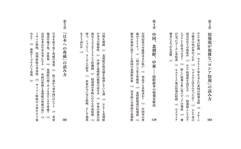 本書では、近年の紛争・戦争・国際政治の背景解読を軸に、ロシアの軍事・安全保障の専門家である小泉悠(東京大学先端科学技術研究センター准教授)とインテリジェンス・軍事ジャーナリストの黒井文太郎が、混迷の時代の情報収集・分析の手法について、対話形式で緊急解説する。フェイクの時代を生き抜く国際ニュースの情報分析術。陰謀論の時代、認知戦の時代をサバイブするための新しい情報学講座。