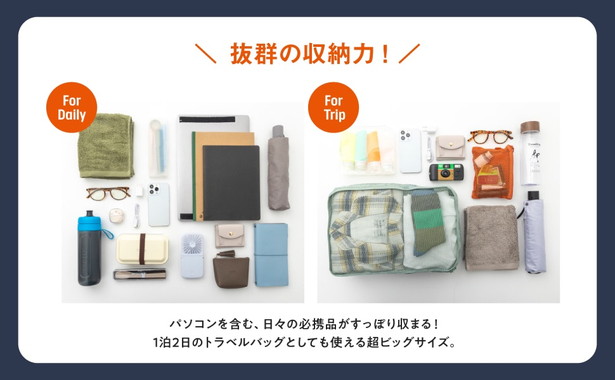 →通勤や通学に使える大容量サイズ。1泊2日のトラベルバッグとしても