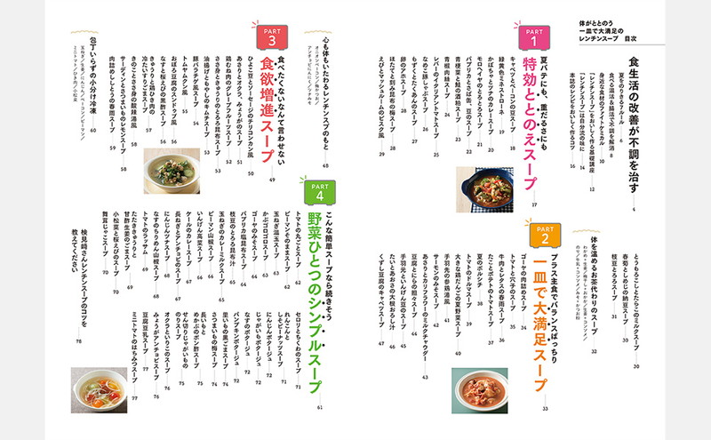 夏バテ解消、疲労回復、食欲不振のときでも食べたくなる、簡単にできて栄養満点のレンジでできるスープのレシピムックです。