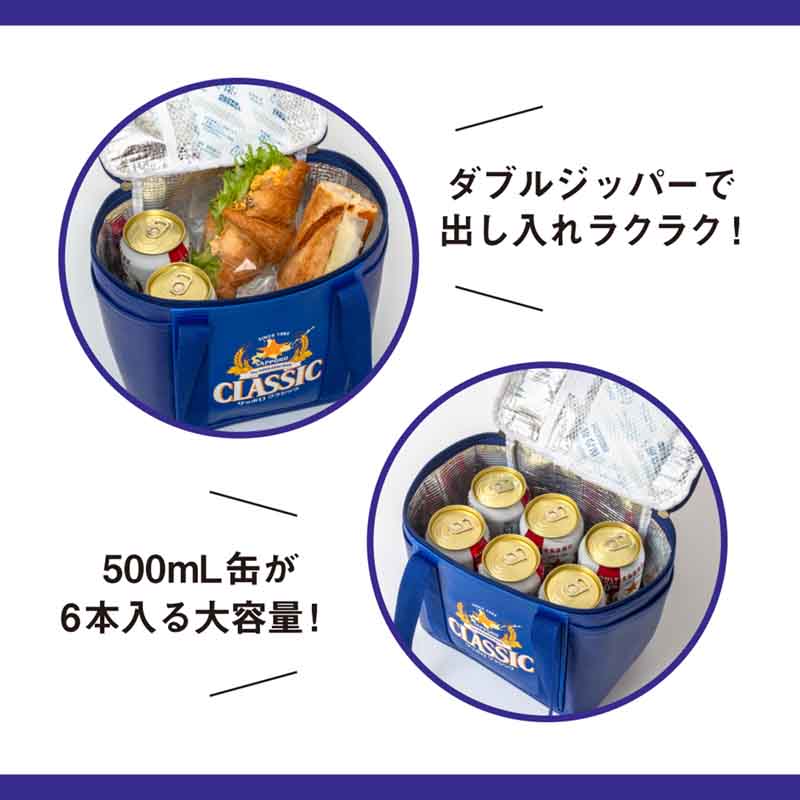 コンパクトなサイズ感なのに500mL缶が6本入る、大容量の「サッポロ クラシック」保冷バッグが登場!