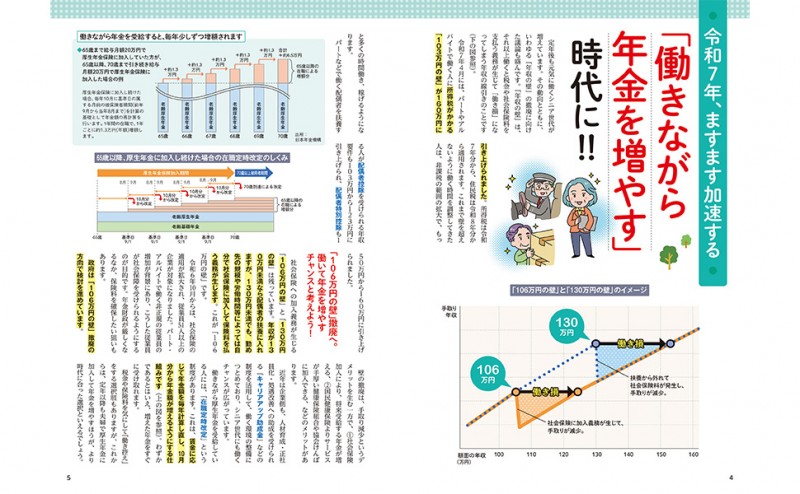 団塊の世代が全員後期高齢者となり、「2025年問題」が起きている今、60歳以上の年金や医療・介護、仕事や暮らし・住まいなど、老後のために備えておきたいことがこの一冊で丸わかり。さらに、「働くほうが得?」「年金を受給するほうが得?」といったパターン紹介など、知っておきたい情報が満載です。