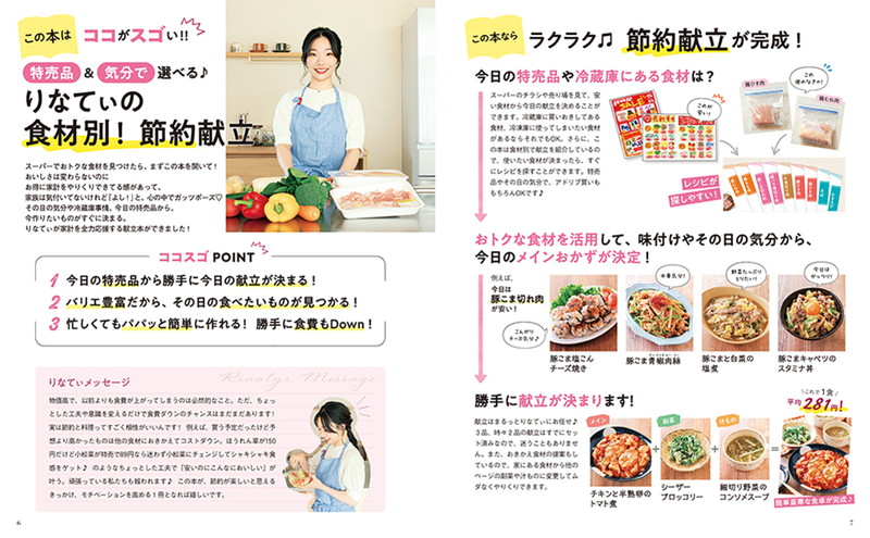 累計139万部超! 日本で一番売れている大人気献立シリーズ、りなてぃの節約献立最新刊。物価高が家計を圧迫しており、食費を工夫してやりくりすることが必須になっています。