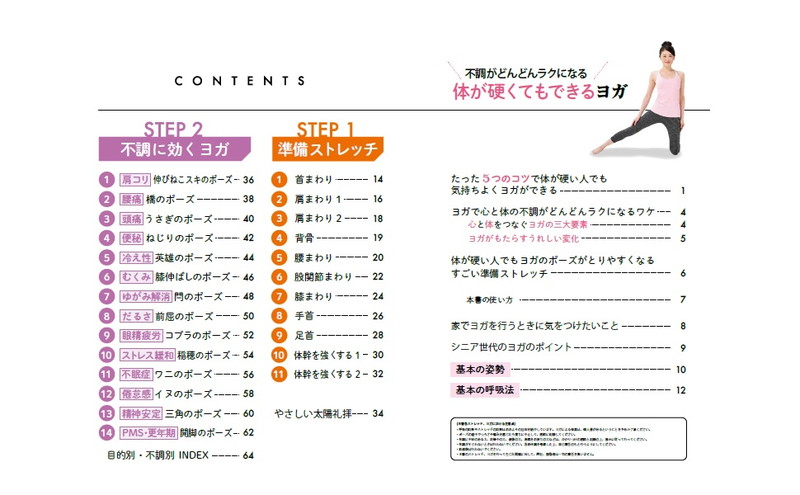ヨガに興味はあっても「体が硬いからムリ……」「お手本のようなポーズができないから私には向いていない……」と断念している方にオススメの、自宅でできる簡単ヨガムックです。