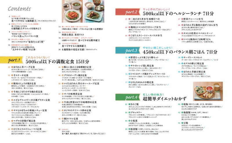 そこで、ダイエット成功率90%以上の女子栄養大学栄養クリニックのノウハウが詰まった「4週間ダイエット献立レシピ集」をお届けします。一日1400kcalの栄養バランスのいいメニューばかりだから、そのままマネするだけでOK! まずは4週間実践してみて。結局、王道こそ近道。ムリなく、おいしく、簡単に作れるレシピで、健康的にやせましょう! 八訂・食品成分表2025対応。