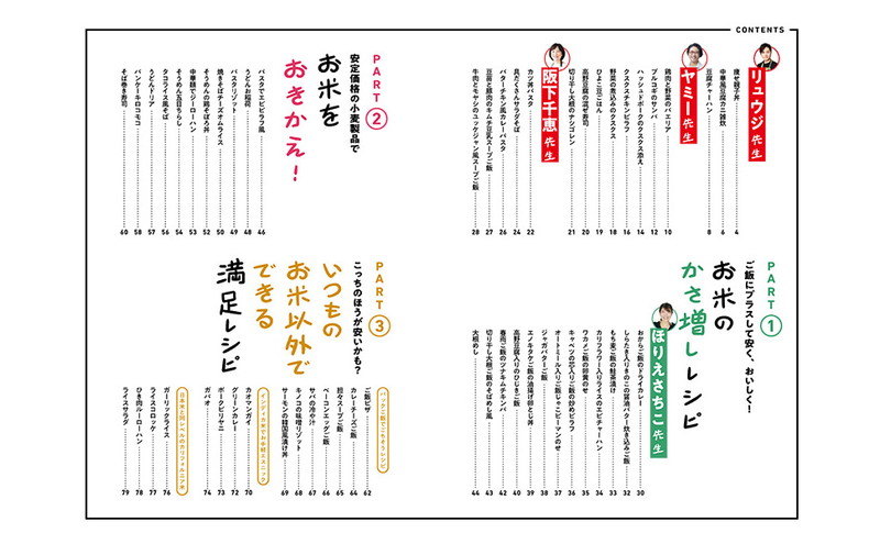 お米にお豆腐やしらたきなどのほかの食材を合わせてかさ増ししたり、別のものに置き換えたり……栄養もおいしさも妥協しない工夫あふれるレシピを、バズレシピのリュウジさん、ヤミーさん、ほりえさちこさん、阪下千恵さんといった大人気の料理家さんたちに聞きました。