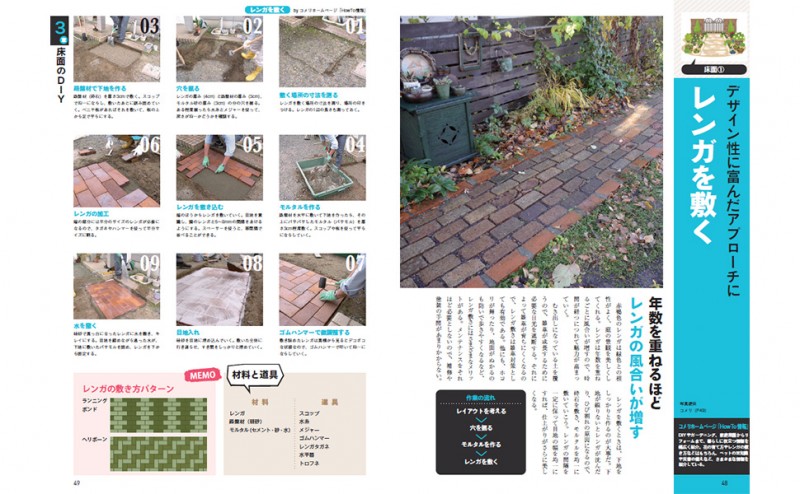 初心者必見の道具&資材選びのコツから、「地盤づくり」や「レンガを使った基本」のテクニック、植物の基礎知識まで、DIYで楽しむ庭づくりの方法を、豊富な写真で解説!