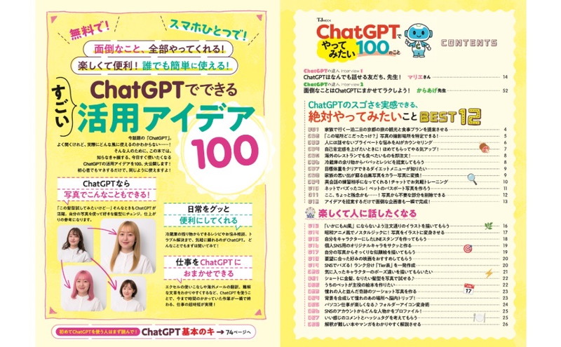 この本では「楽しくて便利な、ChatGPTでやってみたい100のこと」を厳選してご紹介します。