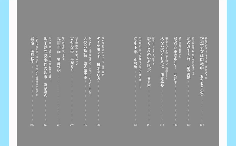 乗車編では『さよならドビュッシー』中山七里さん、『果てしなき渇き』深町秋生さん、『スープ屋しずくの謎解き朝ごはん』友井羊さん、『魔法少女育成計画』の遠藤浅蜊さんなど、22名が参加!