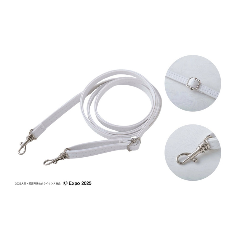 シルバーのキラキラ生地に映えるミャクミャクが目を引きます。大きめスマホもラクに出し入れできる外ポケットと、しっかり閉まるメイン収納の2層構造。
