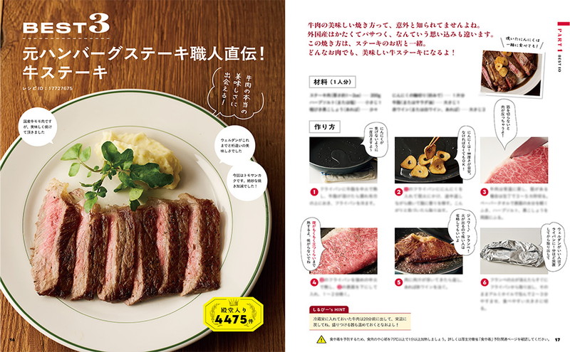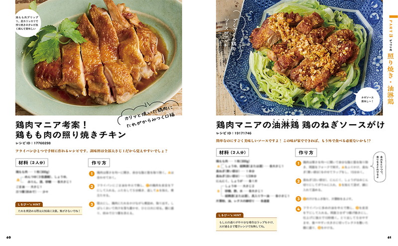 クックパッドでつくれぽ1万件超えの「鶏もも肉のうまい焼き」やハンバーグの黄金比率レシピなど、白ごはんがすすむがっつりおかずのラインナップ。