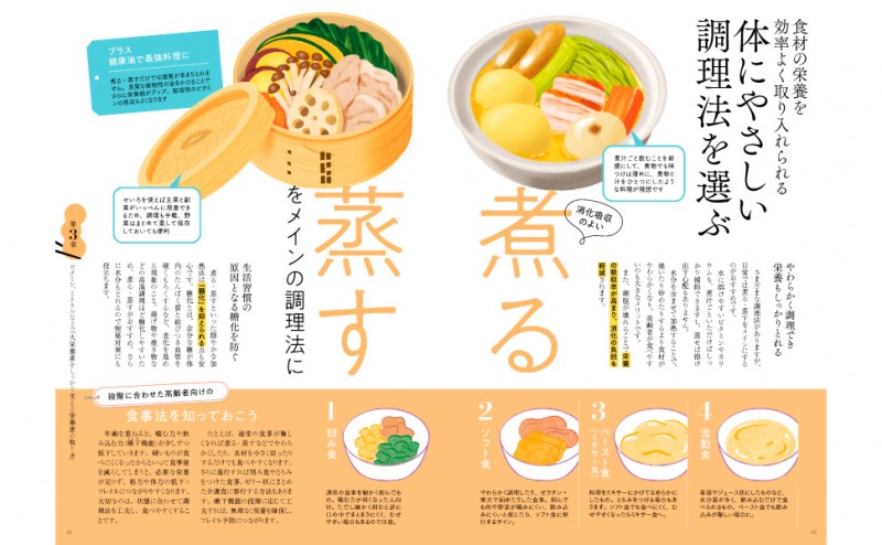 そこで本誌では、シニア世代にこそおすすめしたい、我慢しない、しっかり食べる食事術を紹介。栄養バランス、食べやすさ、そして食事を楽しむ環境を大切にして、これからの食生活を充実させるコツを教えます。生活習慣の改善法、軽い運動も紹介。