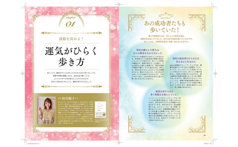 本誌では、ただの移動ではなく、歩くことで現実を動かす“スピリチュアルな実践”としての習慣を紹介。成功者が無意識に実践している“運とチャンスを引き寄せる”歩き方を紹介し、単なる健康法ではなく、成果を出す人が習慣にしている“運気がひらく歩き方”にフォーカスします。