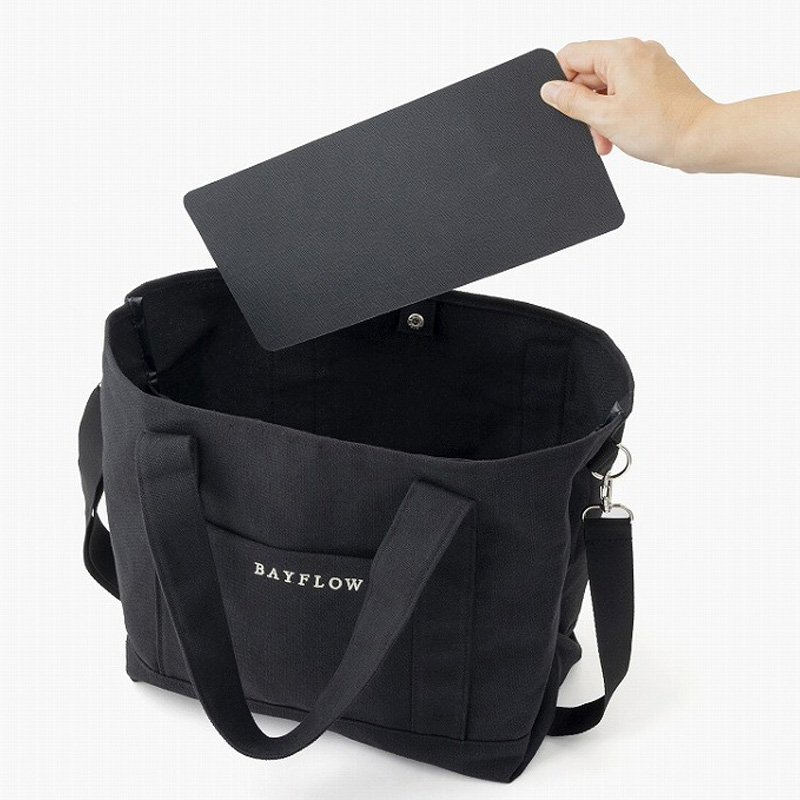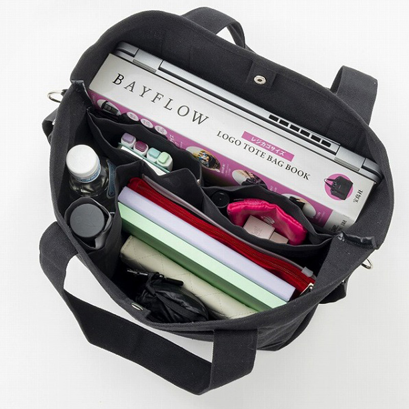 「BAYFLOW(ベイフロー)」で人気のロゴトートに、収納しやすい5つのポケットがついた、大きめサイズのトートバッグが登場。