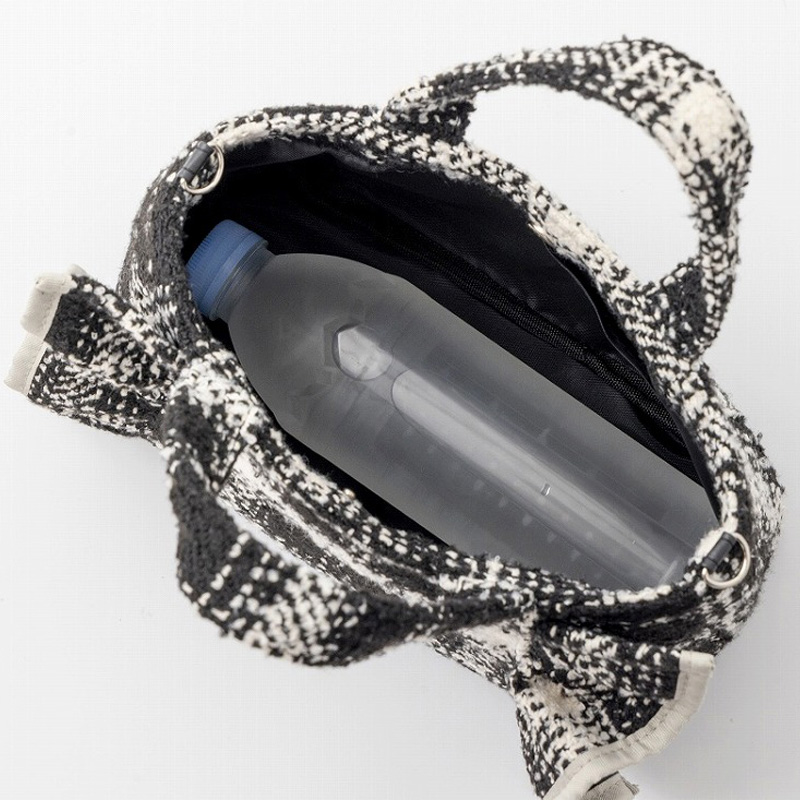 ブラックのツイードが大人可愛いバッグは、デイリー使いにちょうどいいサイズ。