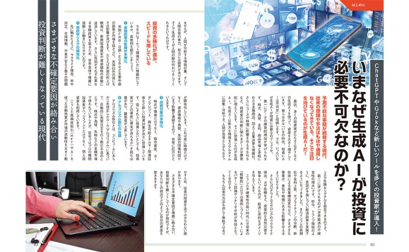 決算書の分析からビジネスモデルの研究、おすすめ銘柄の選定から投資信託の評価まで、株の初心者・上級者を問わず、AIが大きく活躍する場面は多々あります。億り人たちが続々と参入しているAI×投資の世界を初めての人にもわかりやすくご紹介。