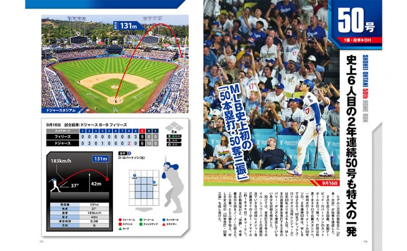 大谷選手が2025年に放った全本塁打を詳細データとともに完全再現。ドジャース移籍2年目、二刀流復活とワールドシリーズ連覇という記念すべきシーズンの全本塁打を網羅した完全保存版の一冊。巻末には全打席の詳細データも。ベストショット満載!