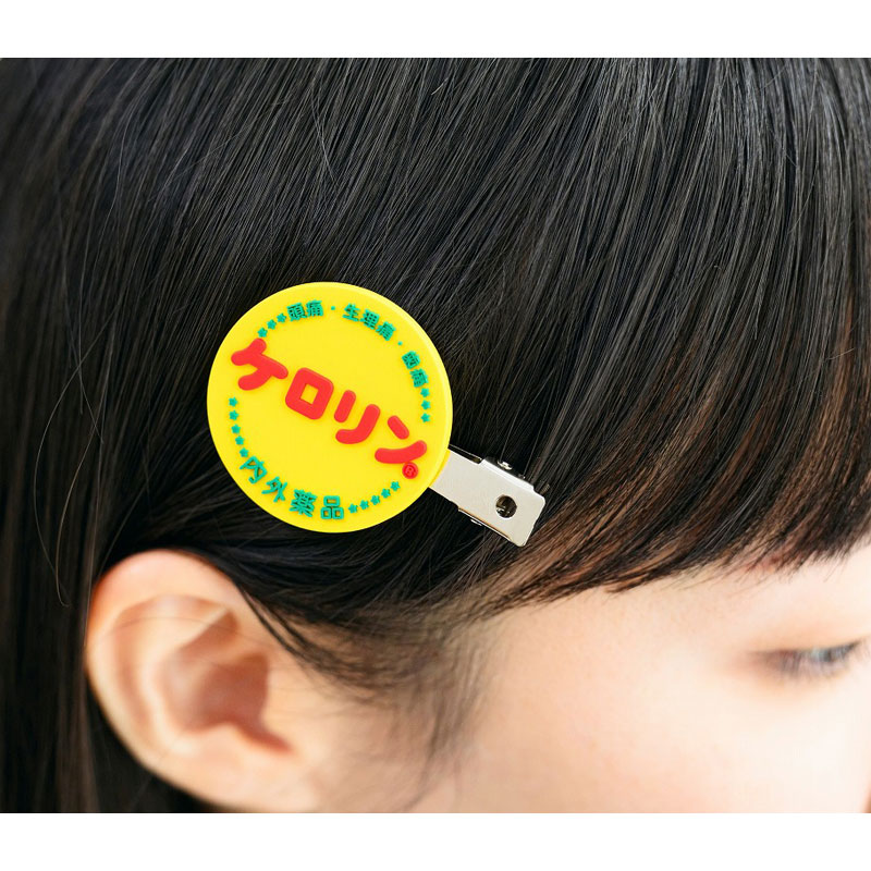 ケロリン桶風で丸型の前髪クリップは、ロゴ部分がぷっくりしていて可愛い! メイク時の髪留めとして役立ちます。