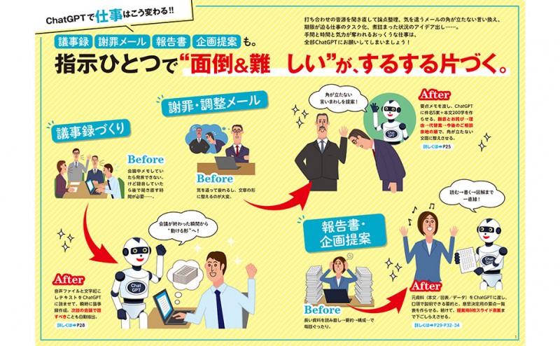 あらゆる仕事が“爆速”で進み、困りごとも相談・解決できると話題のChatGPT。本誌ではアカウントの作り方から基本の使い方、仕事や日常で“時短&ラクになる”便利ワザまで、画面付きで丁寧に解説。メール作成、資料作り、アイデア出し、予定整理もChatGPTにおまかせ! 話題の最新AIを味方につけて、あなたの毎日がグンと快適になる一冊です。