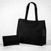 最高級ブラックフォーマルブランド「YUKI TORII」監修によるマナーバッグと袱紗のセットです。ロゴ刺繍がポイントになった上品なデザインで、冠婚葬祭、学校行事など幅広いフォーマルシーンに役立ちます。マナーバッグはハンドバッグがすっぽりと入る横型を採用。使いやすい内ポケットつきです。