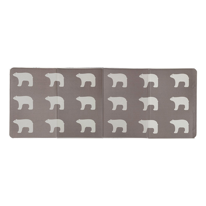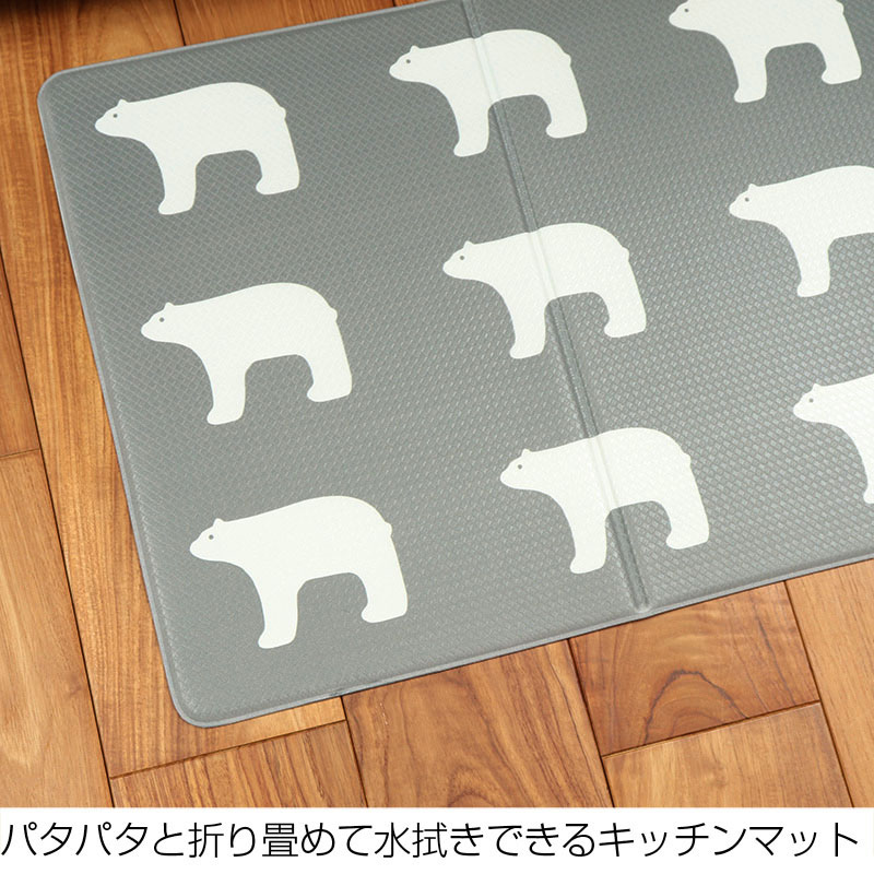 「しろくま」がたくさん並んだキッチンマット。落ち着きのあるグレーで、キッチンにも馴染みやすいカラーです。