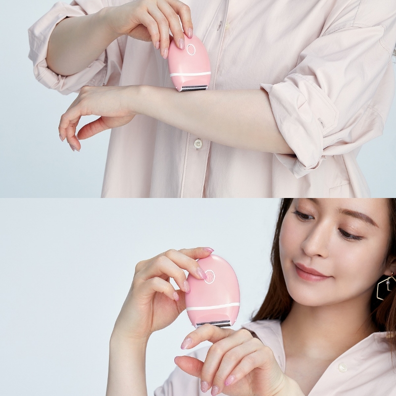 肌にやさしく押し当て、なでるように動かすだけで顔や腕、指、脚、ワキ、Vラインなど全身のうぶ毛・ムダ毛を手軽に処理できる“美肌シェーバー”。