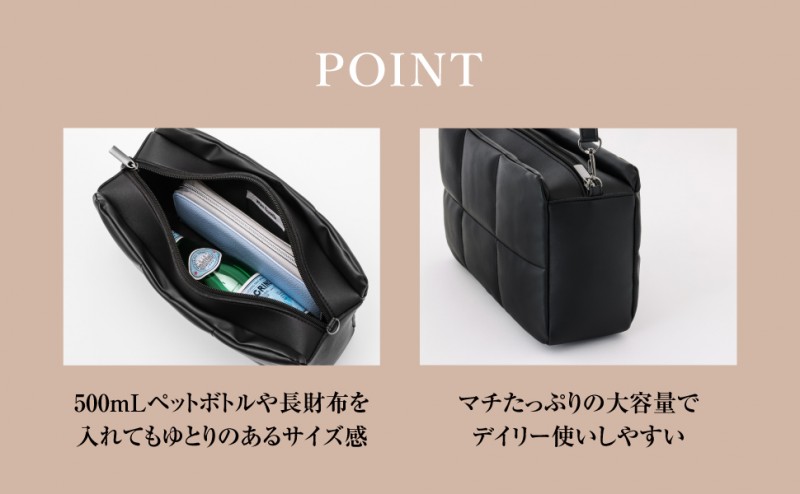 本誌限定アイテムは、柔らかなレザー調素材に施されたブロックステッチがアイコニックなショルダーバッグ。ハリからシボ、金具まで高級感にこだわりました。マチが大きく大容量で、内ポケット付きなので、デイリーユースはもちろん、お出かけにもぴったり。