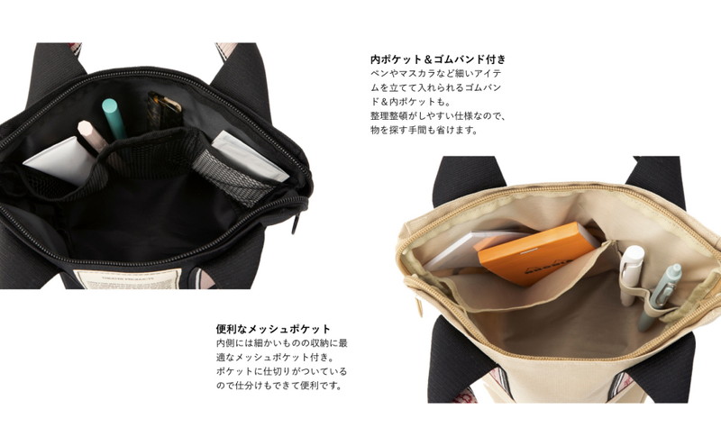 内側には細かいものの収納に最適なメッシュポケット付き。