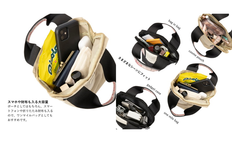 バッグインバッグ、コスメポーチ、ガジェットケース、ワンマイルバッグなど、