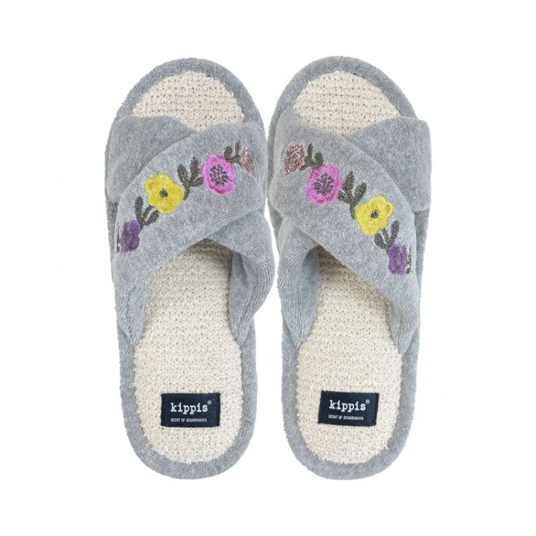kippis 花冠クロスバンドスリッパ グレー