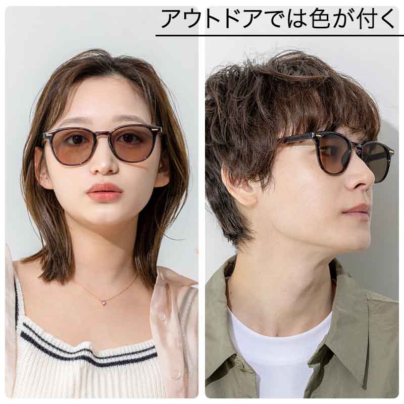 紫外線量でレンズカラーが変化する調光レンズを採用したUVカットサングラス