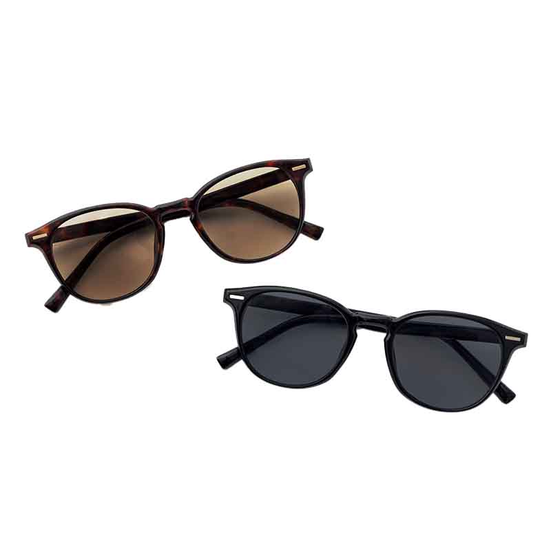 顔の形に関わらずバランスがとりやすいウェリントン型フレームで、紫外線対策しながらお洒落感をプラス。目元が透けるさりげないライトカラーがかけやすい、軽量サングラスです。高さのあるフレームで小顔に見えるのもうれしいポイント。