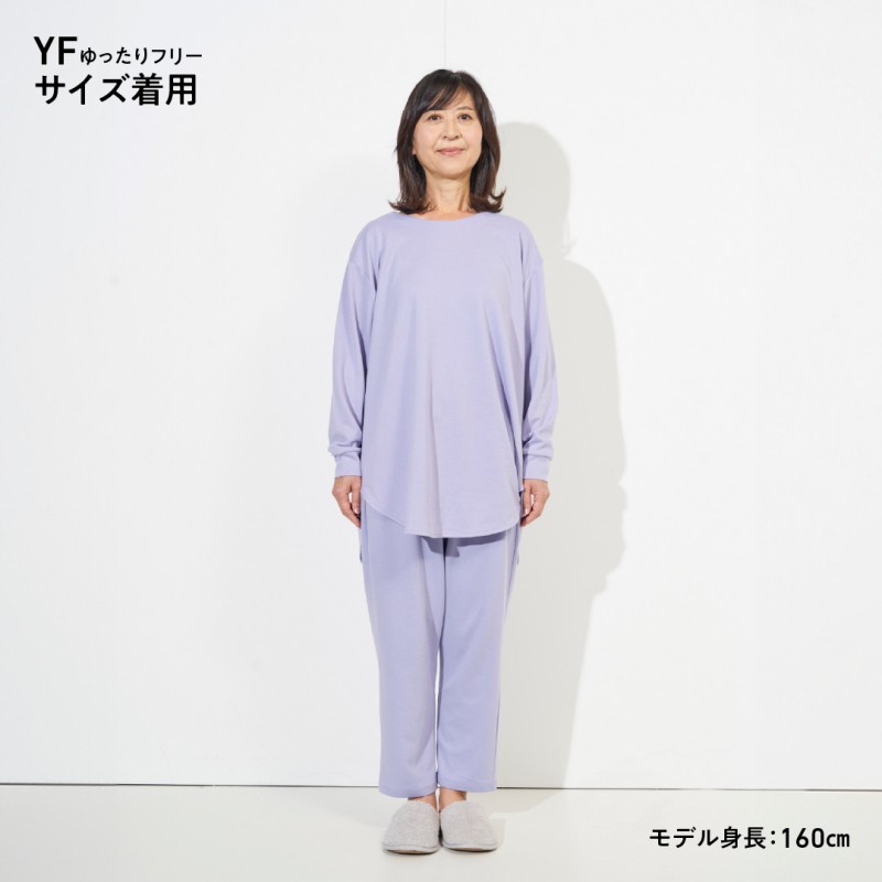 上・長袖+下・YFゆったりフリーサイズセット/グレージュ 大人のおしゃれ手帖監修 上品だからおしゃれ着にも! 体型カバーが叶う疲労回復ウェア Recoverypro Lab. プレミアム [一般医療機器]