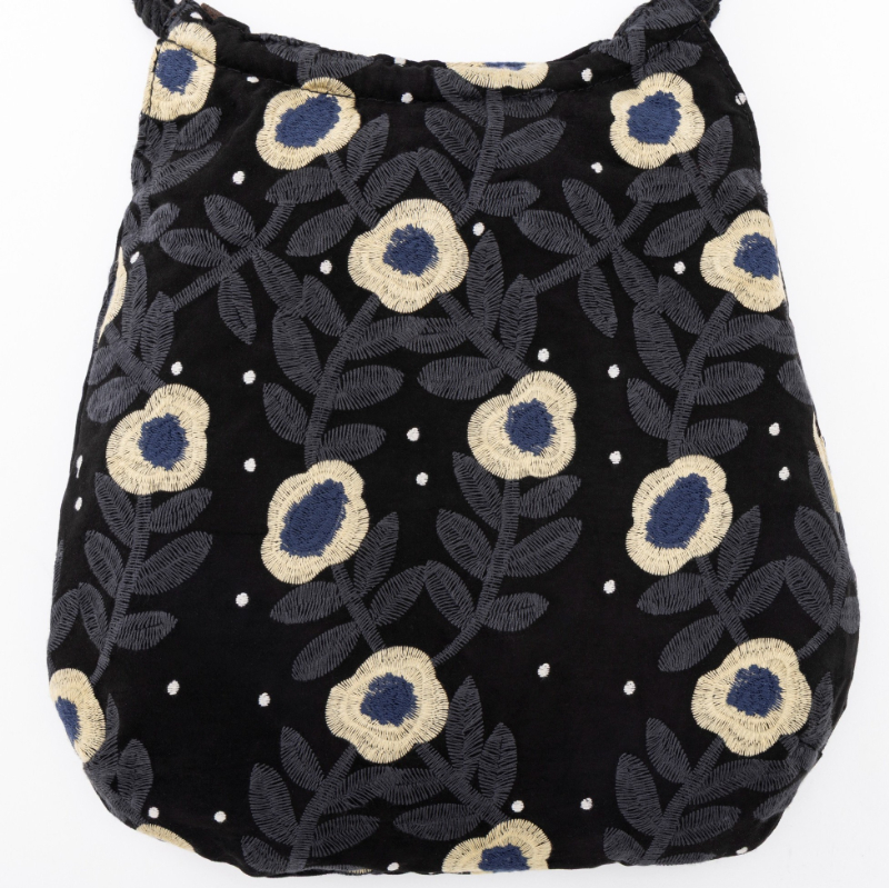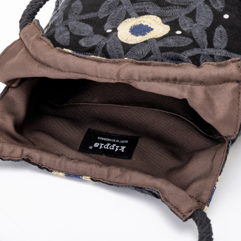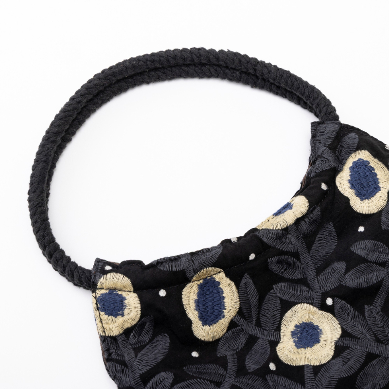 kippis 刺しゅうラウンドトートバッグ Lentokukka black