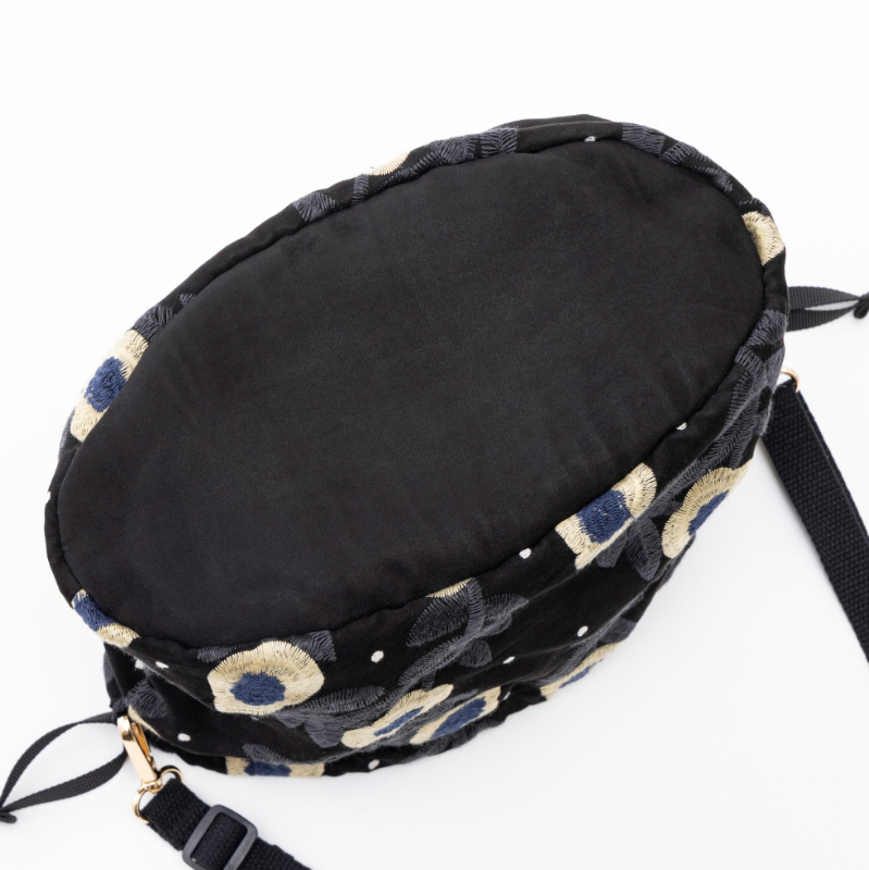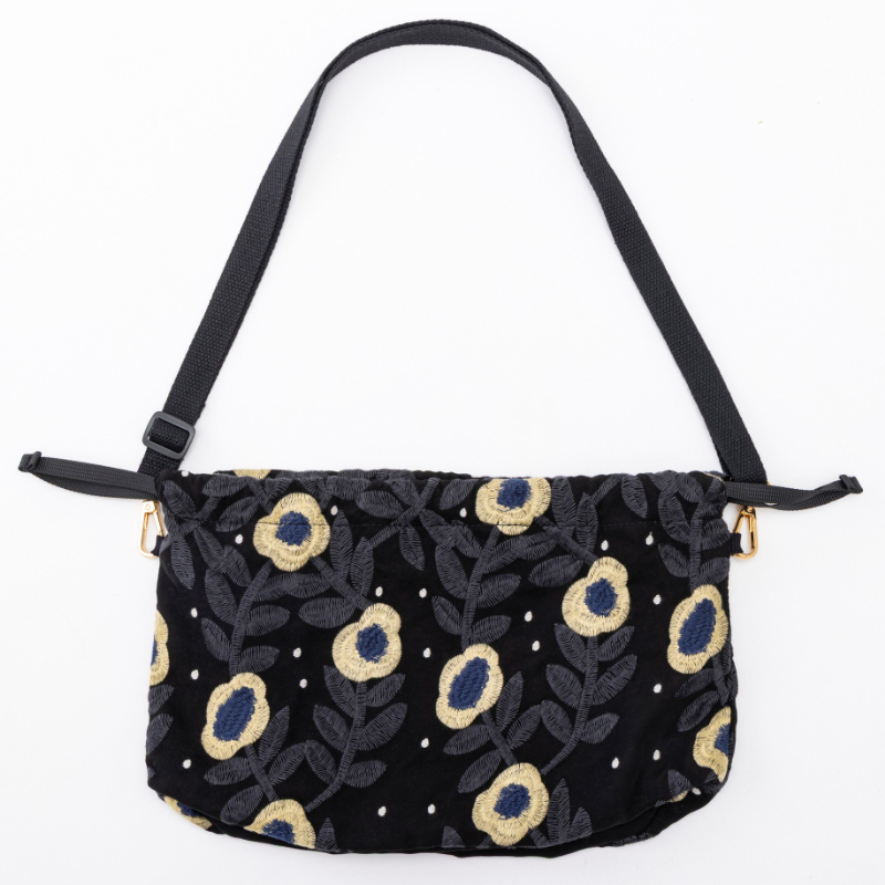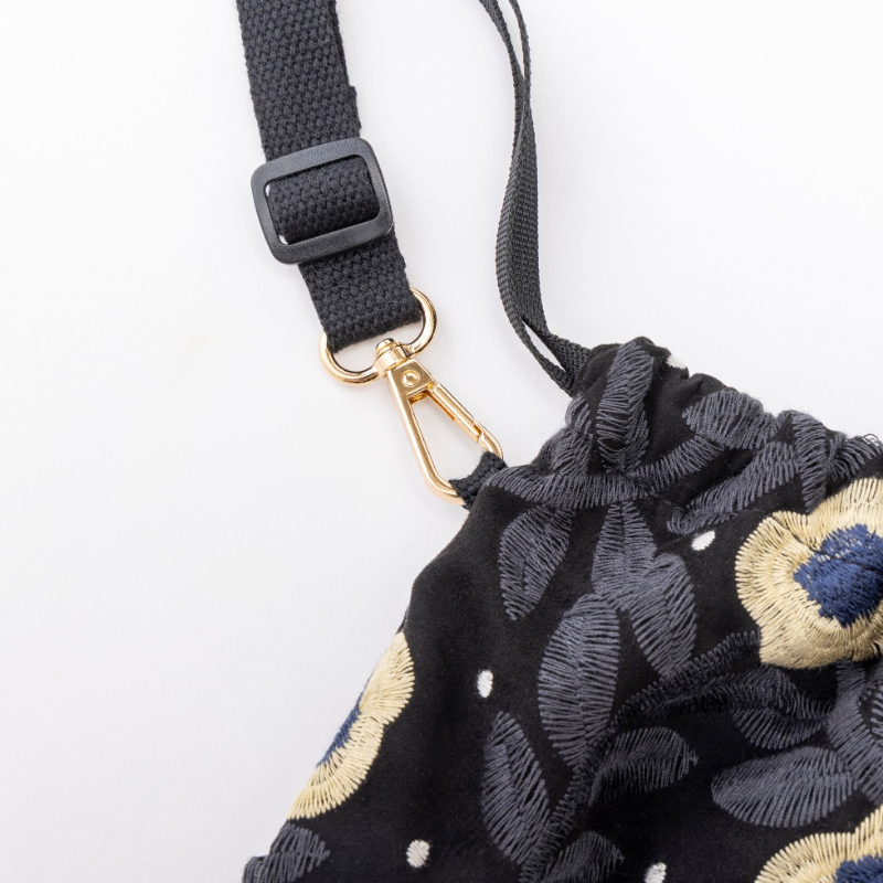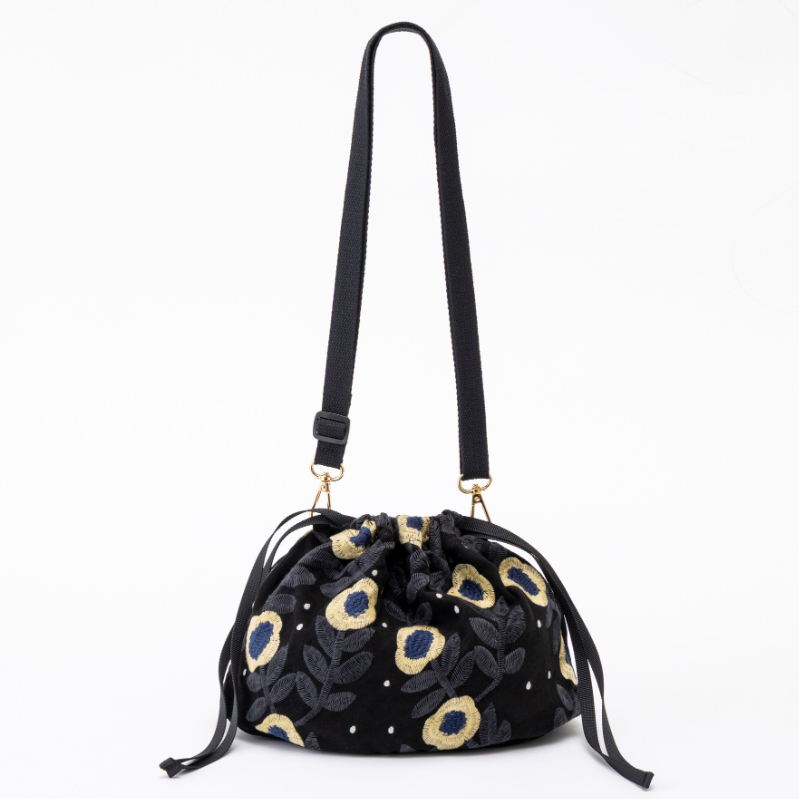 kippis 刺しゅう巾着ショルダーバッグ Lentokukka black