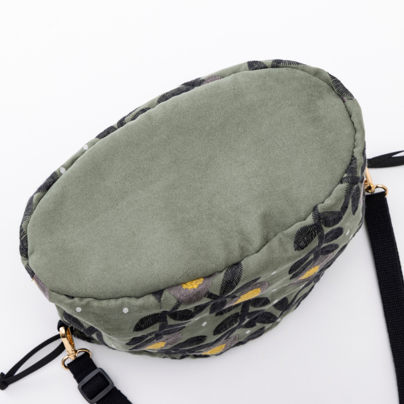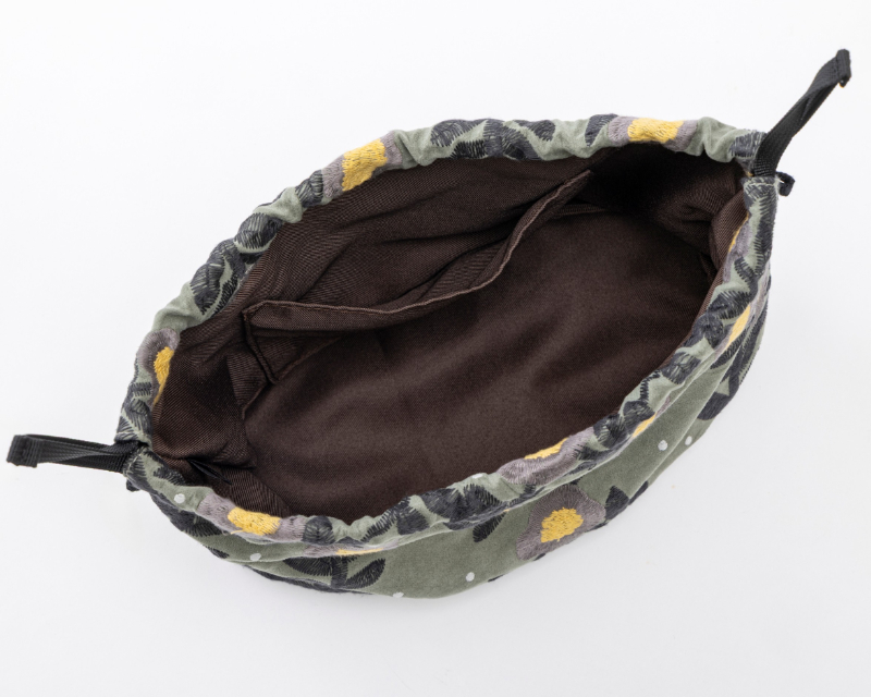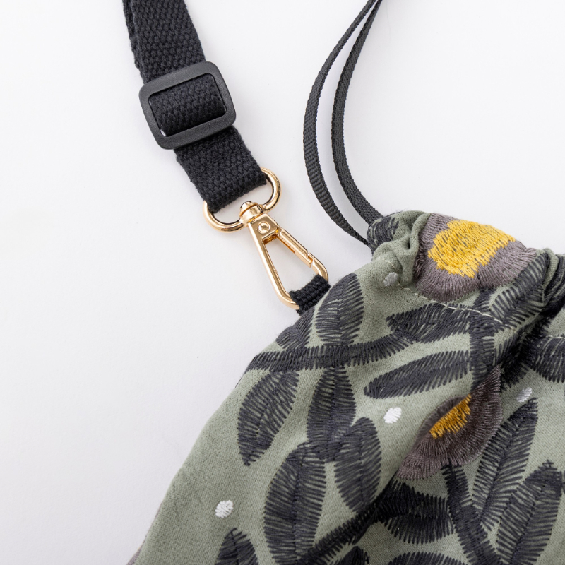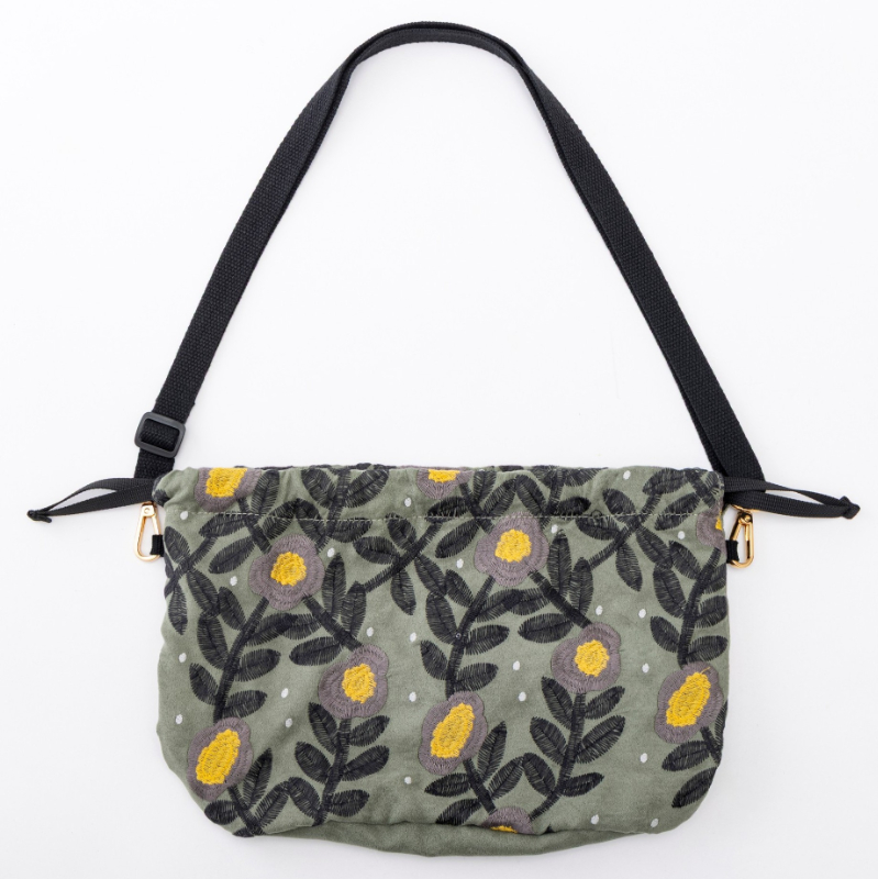 kippis 刺しゅう巾着ショルダーバッグ Lentokukka smoke green