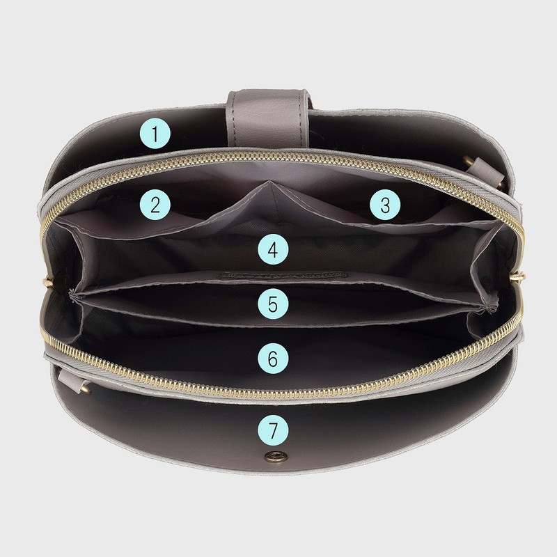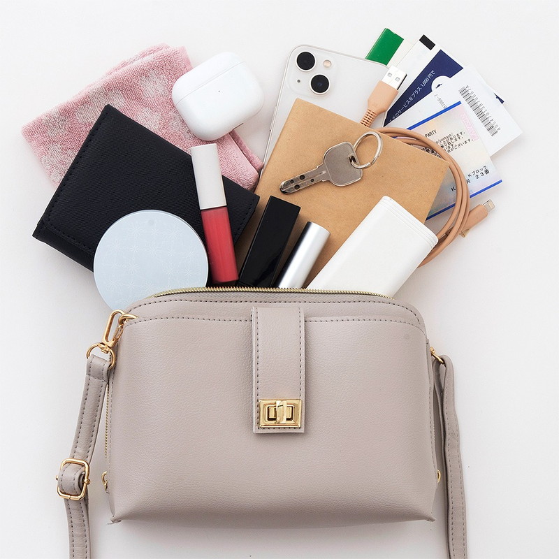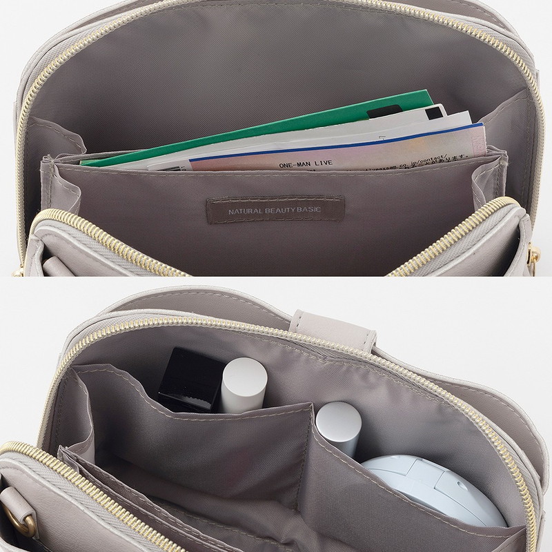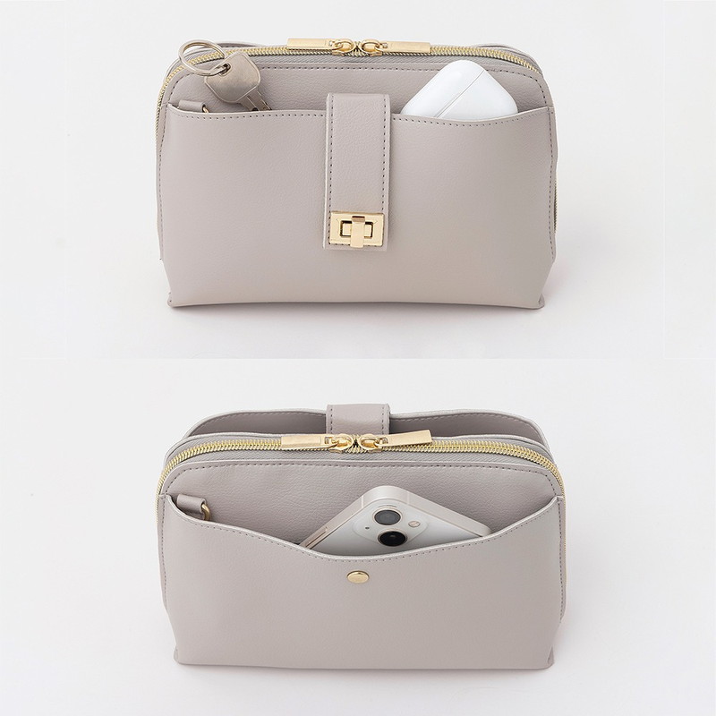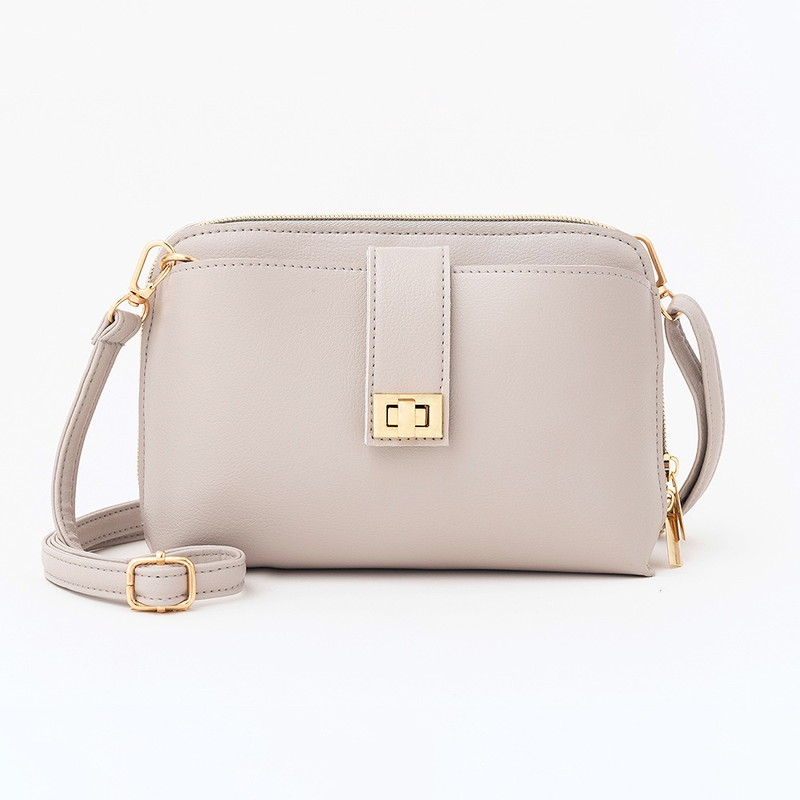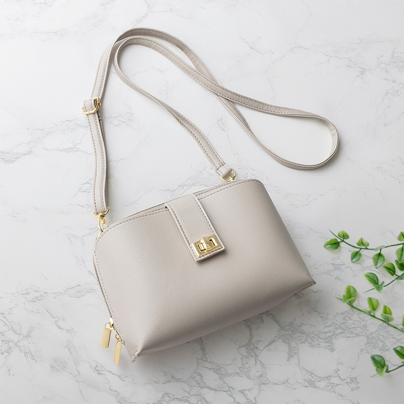 ターンロック付きの3層ショルダーバッグを春夏らしいグレージュカラーで仕上げました。