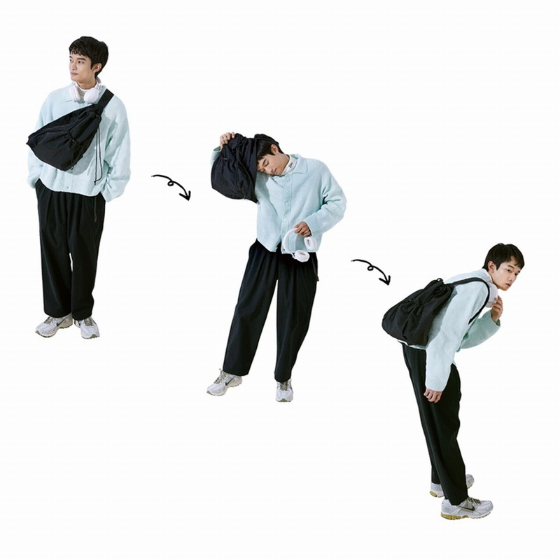 さらに、ストッパー付きのドロストで開閉もスムーズ。ユニセックスで多様なスタイルに対応できるバッグです。