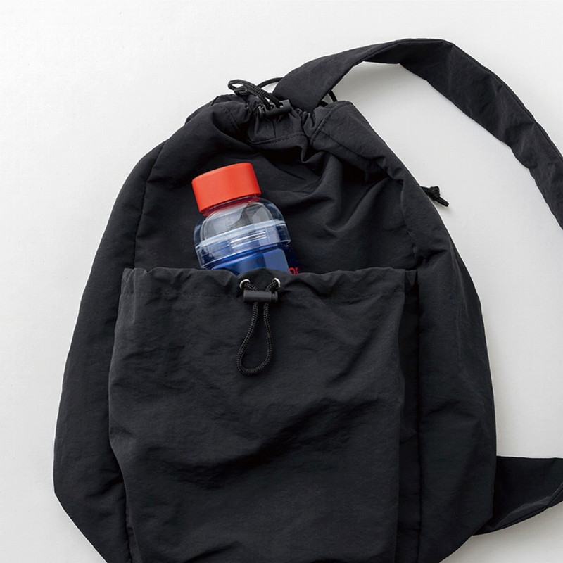 トレンドのドローストリング仕様のショルダーバッグ。軽くて丈夫な生地にワンショルダーのストラップで、さらっと背負って軽やかに出かけられます。