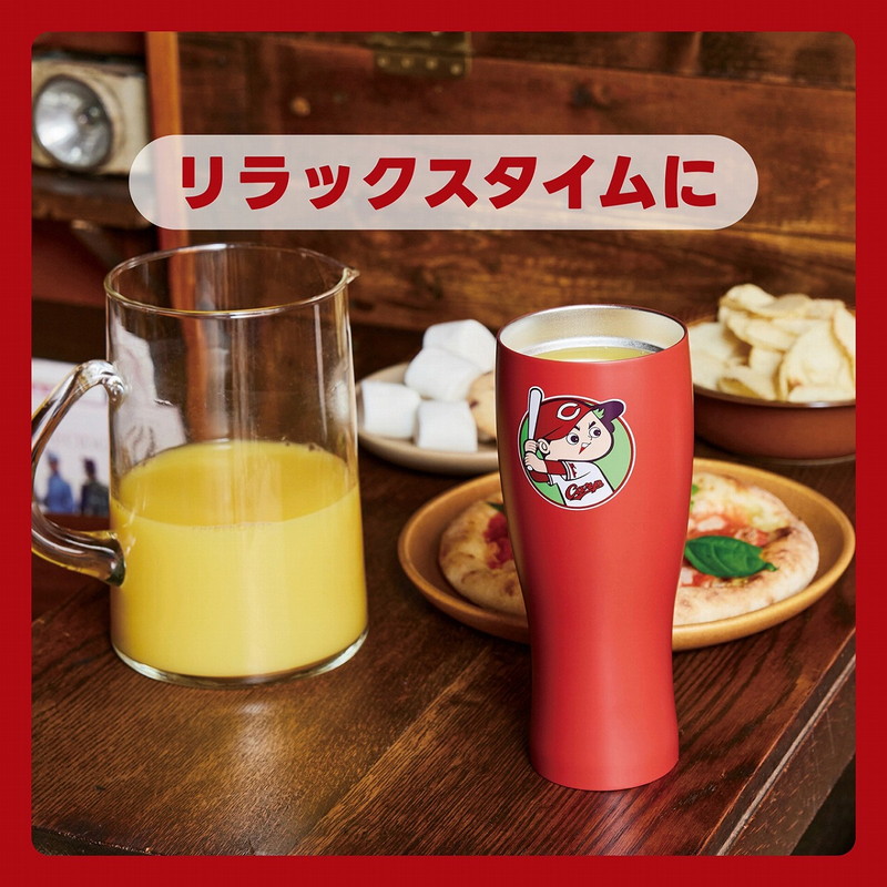 真空断熱構造の保冷・保温力で、ビールやコーヒーのおいしい温度を長時間キープ。広島東洋カープのキャラクター「カープ坊や」とロゴをあしらった、おしゃれなタンブラーです。野球観戦のおともにぴったり!