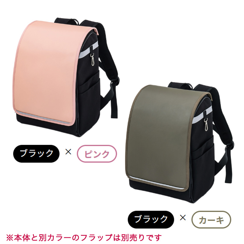 定番のブラックに加え、ベーシックすぎない“カーキ”の効かせカラーをセレクト。子どもっぽくなりすぎないよう、絶妙なカーキの色味なので、通学スタイルにもおしゃれ心を忘れないお子さまにおすすめです。