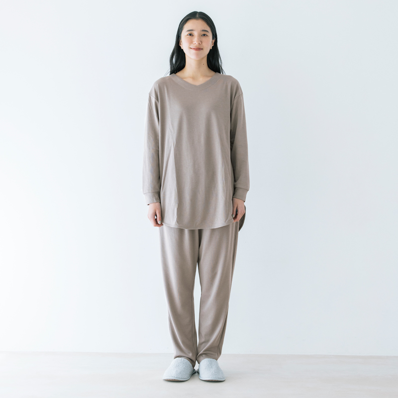[一般医療機器] Recoverypro Lab.疲労回復ウェア 大人のおしゃれ手帖監修【上下セット(長袖チュニック・ロングパンツ)/YFサイズ】グレージュ