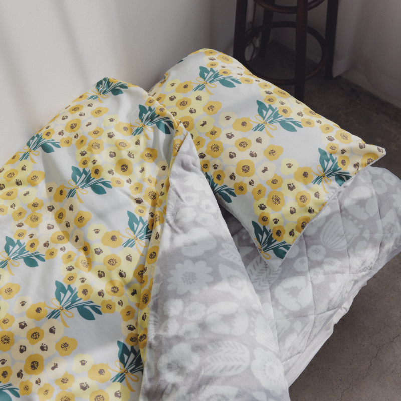 「Kukkakimppu」柄を鮮やかにあしらったあたたか寝具です。