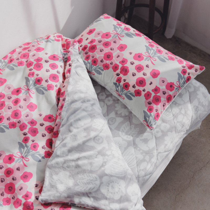 「Kukkakimppu」柄を鮮やかにあしらったあたたか寝具です。