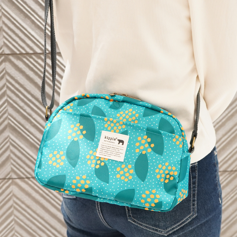 ファスナー引手の金具はアンティークゴールドを使用し、kippisの柄に溶け込むデザインになっています。